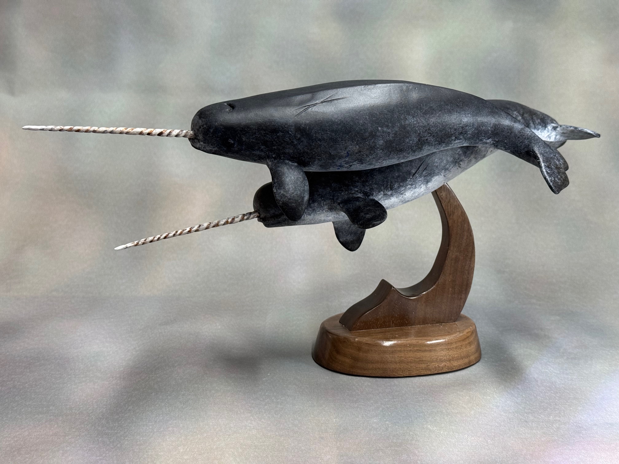 I am a woodcarver specializing in marine animals; primarily Whales and Dolphins. The carvings are realistic and made from basswood, painted and mounted on a Black Walnut base. The carvings are signed and numbered and each is an original. I accept commissions and have taught numerous power carving seminars at various locations in Western Canada.